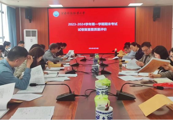 为切实加强考试工作管理,规范试卷命题、评阅、试卷分析及考试材料规范归档工作,提高学业检测水平和教学质量,按照《河南科技职业大学2023-2024学年第一学期期末考试试卷复查的通知》整体工作部署,学校于2024年4月16日下午在综合教学中心八楼会议室开展2023-2024学年第一学期期末考试试卷集中复查与质量评价工作。本次试卷复查工作由教学质量监控与评估处、教务处、督导处、各教学院部联合开展。教学质量监控与评估处处长徐忠根、医学院副院长张德言、经管学院副院长郭秀英和刁雪影、教育学院副院长巴亚伟、公共基础教学部副主任杨平以及张新胜、罗开国、魏华、夏长林、侯丰泽、黄胜银、华瑞杰、徐小娟、吴衡等20位校级教评员参加了复查工作。