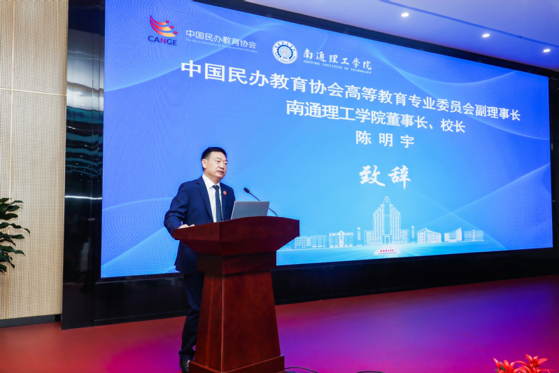 陈明宇在致辞时对各位领导、专家和兄弟院校代表表示欢迎,向关心支持南通理工学院发展的各界人士表示感谢。他表示,新一届的中国民办教育协会高专委成立以来,围绕民办高等教育高质量发展做了大量的调研和研究工作,举办了多场高质量的专题培训,得到了全国民办高校的高度认可。国家越来越重视民办高等教育的规范办学,教育主管部门越来越关心民办高等教育的高质量发展,希望与各位专家、同仁加强联系,共同推动民办高等教育事业高质量发展。随后,他还向与会人员介绍了南通理工学院的基本情况及发展规划。
